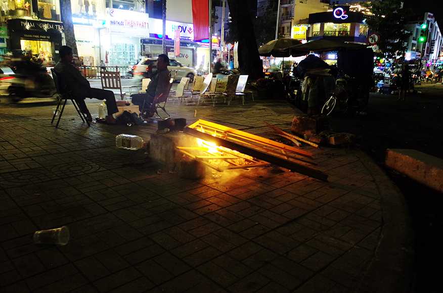 道で普通にゴミ燃やしてます。