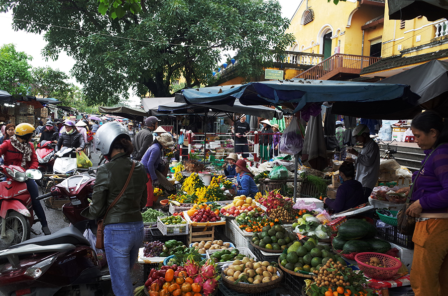 ホイアン市場の外周にある朝市